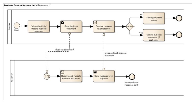 メッセージレベルの応答が返された場合は、メッセージレベルの応答受信者に通知し、適切なアクションを実行する必要がある。肯定応答の場合、メッセージレベルの応答の受信者は業務文書の状態を更新するか、単にメッセージレベルの応答を無視する場合がある。
